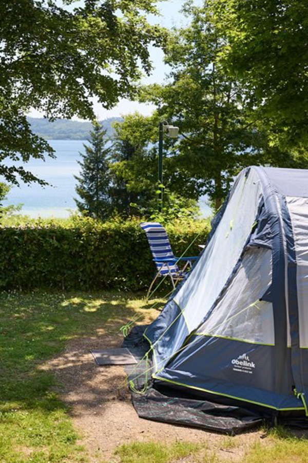 Superb pitch looking over the lake with electricity and water. Nice little hedges separate the pitches.