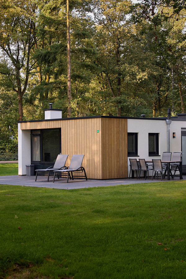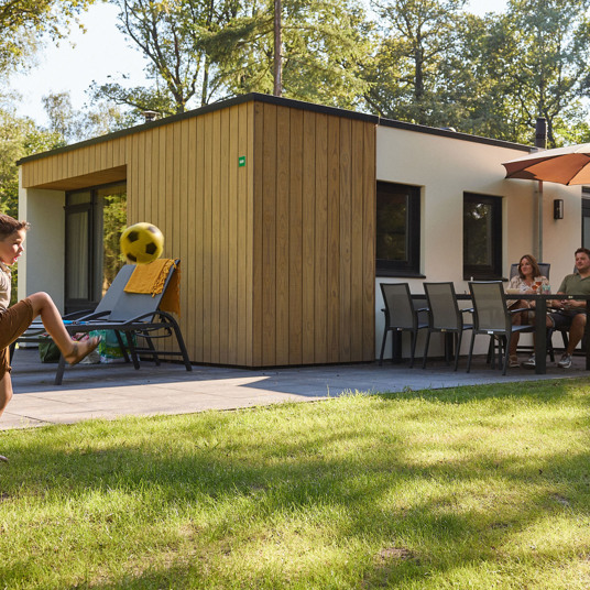 RCN de Flaasbloem's bungalow park is in the middle of the forests of Chaam. The accommodations are available to rent for groups of four to eight people. The biggest can also house two families. Around the centrally located lake, there are several luxury four-room chalets, each with an open kitchen with dishwasher and combination microwave. Two of these chalets have their own terrace next to the lake.