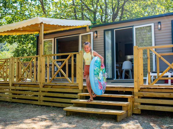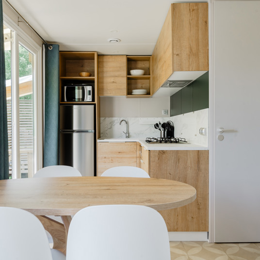 Les mobil-homes ont une capacité de quatre à six personnes. Ils disposent d’une cuisine ouverte, de toilettes séparées et d’une magnifique terrasse. Les équipements et le confort varient en fonction du type d’hébergement. Le mobil-home de luxe Jonte est équipé d’une terrasse panoramique sur le toit. Le chauffage électrique à disposition dans chaque logement garantit votre confort pour les soirées plus fraîches.