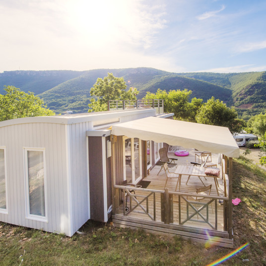 Een stacaravan huur je voor vier tot zes personen. Alle caravans hebben een open keuken, apart sanitair en een terras. Verder verschillen de typen in luxe en voorzieningen. Een van de meest riante modellen heeft een extra zonneterras op het dak. Alle chalets en stacaravans beschikken over een elektrische verwarming, voor als het ’s avonds afkoelt.