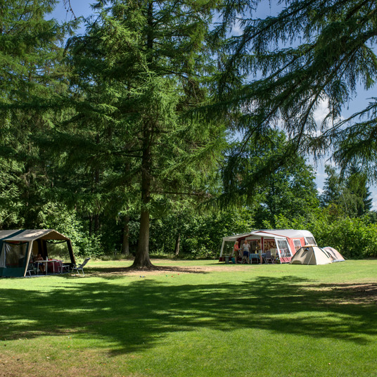 Alle kampeervelden zijn omgeven door bomen en struiken, wat bijdraagt aan de persoonlijke en kleinschalige sfeer die we zo waarderen. Je zult nauwelijks merken hoe groot de Roggeberg eigenlijk is. Met kampeerplaatsen van minimaal honderd vierkante meter, is er bij de tent voldoende ruimte voor een spelletje of een uitgebreid buitenontbijt.