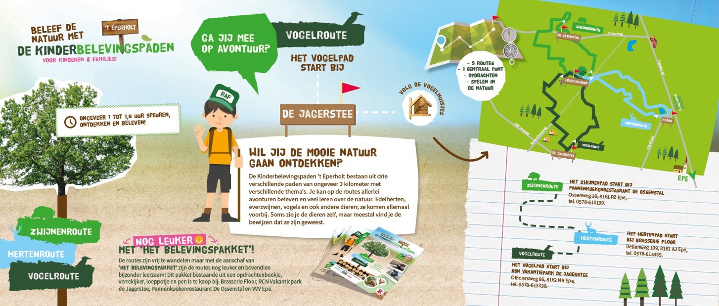 Beleef de natuur met de kinderbelevingspaden! In de buurt van de Jagerstee worden verschillende avonturen en routes georganiseerd, speciaal voor kinderen en families. Van edelherten tot everzwijnen en van vogels tot muizen, je spot ze allemaal. Soms zie je ze lopen of vliegen, maar meestal vind je sporen.